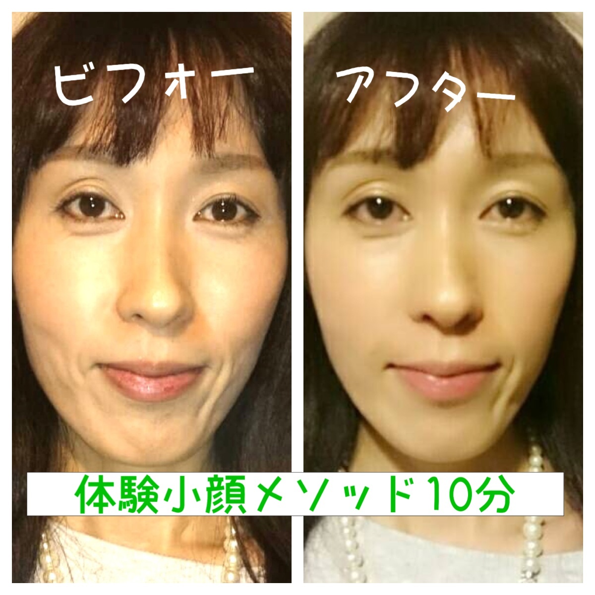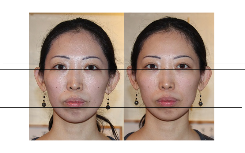 ・おでこが下がり、顎が引き締まる